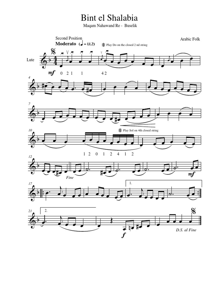 El Bint El Shalabiya البنت الشلبية Arabic Musical Scores