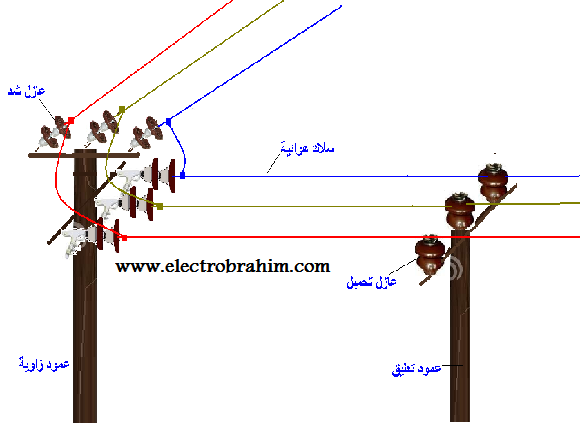 مكونات الخطوط الهوائية وانواع الاعمدة للجهد المنخفض Electrical Transmission Lines