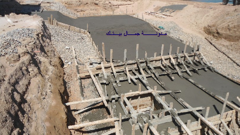 الخرسانة العادية. يتم الحصول عليها عن طريق خلط المكونات الأساسية من الإسمنت والماء والركام للحصول على خرسانة ذات قوة عادية وتتراوح قوة هذا النوع بين 10 40 ميجا باسكال ويتراوح زمن الشك الابتدائي بالإنجليزية. 30 م وبسمك 20 سم مع دق أوتاد خشبية لتحديد ظهر الخرسانة العادية. الباطون أو الخرسانة هي خلطة تتكو ن من عد ة مكونات يتم جبلها معا تحتوي على الإسمنت الن اعم والماء ويضاف لها الر مل والأحجار الص غيرة المكس رة الز لط والبحص الط بيعي وهي ت عتبر من مقو مات البناء.