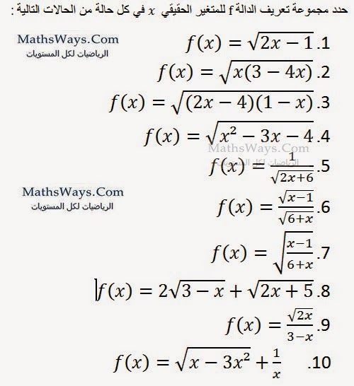 طريقة تحديد مجموعة تعريف دالة جذرية مع امثلة تطبيقية
