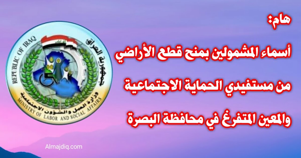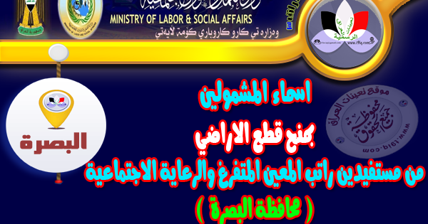 عاجل اسماء المشمولين بمنح قطع الاراضي من مستفيدي راتب المعين المتفرغ والرعاية الاجتماعية محافظة البصرة 2019 موقع تعيينات العراق