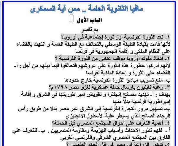 مذكرة تاريخ للصف الثالث الثانوى 2018 سؤال وجواب
