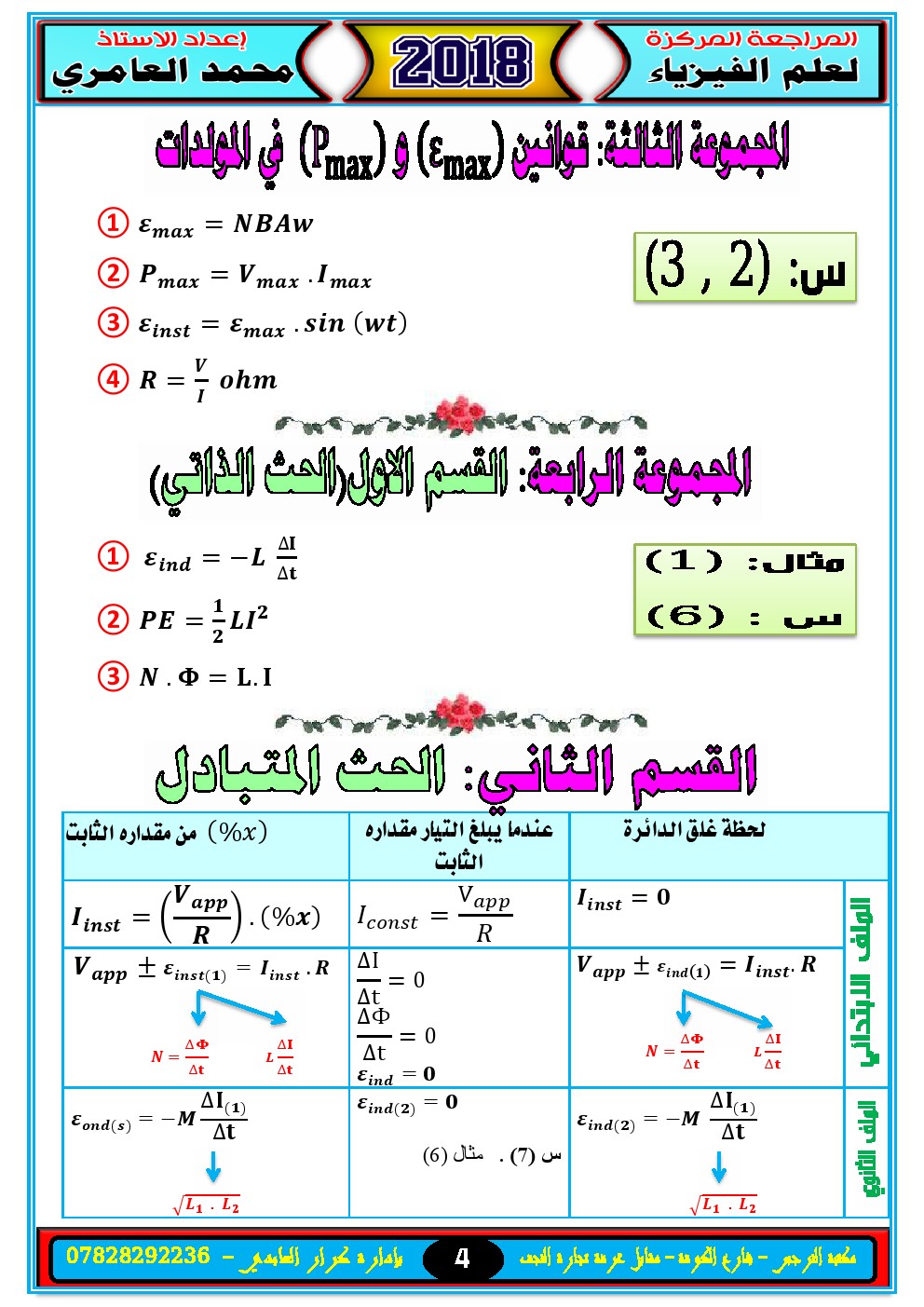 ملخص قوانين الفيزياء للصف السادس الاعدادي للاستاذ محمد العامري المنهج الجديد 2017