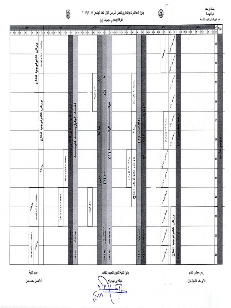 جدول محاضرات الفصل الدراسي الأول للعام الدراسي 2018 2019 م جامعة مروي التكنولوجية عبد اللطيف الحمد
